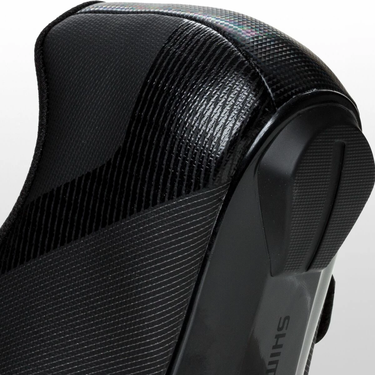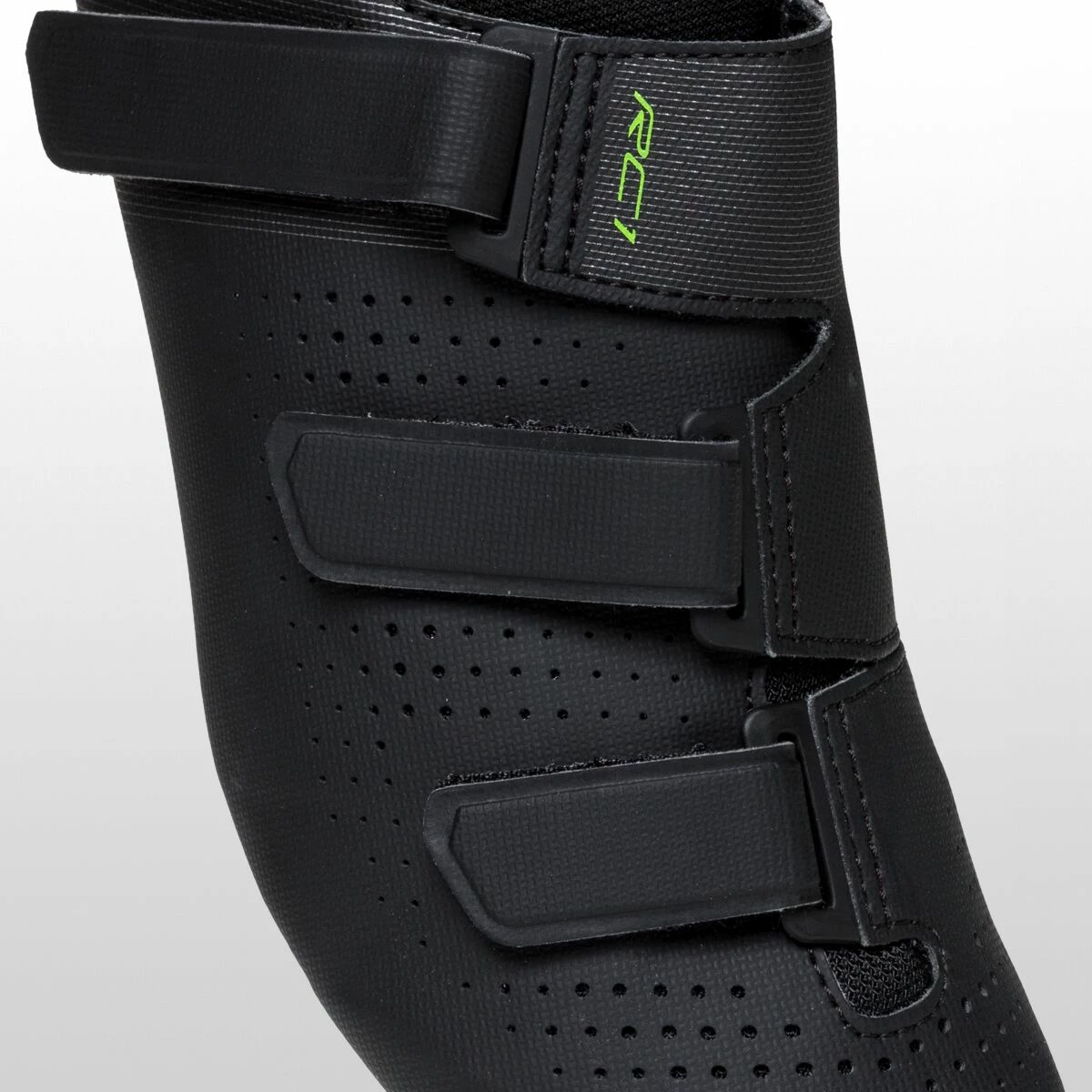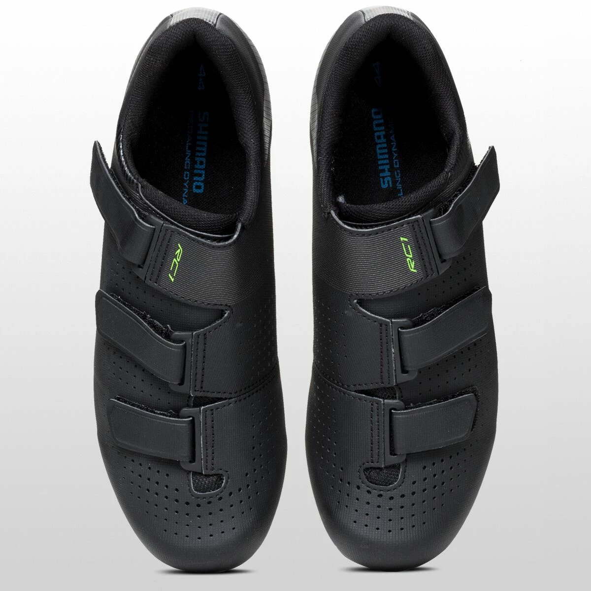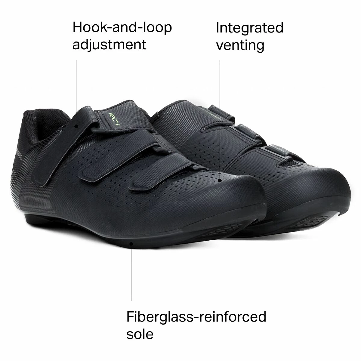 Shimanoโs entry-level RC1 Cycling Shoe hits the sweet spot between spin-class readiness and budget-minded touring. With an eye on simplicity and comfort, the three offset hook-and-loop straps close down to provide a secure and performance-focused fit while keeping a refined and aerodynamic profile. The moderate stiffness of the fiberglass reinforced nylon sole, combined with opening the straps after your interval session, provides a pleasant walking experience compared to highly stiff carbon-soled shoes on the market. The perforated synthetic upper breathes and cleans easily after early spring rides on semi-damp roadways. The RC1 is equipped to pair with 3-bolt cleat systems making it ideal for road-specific cycling or your at-home trainer.