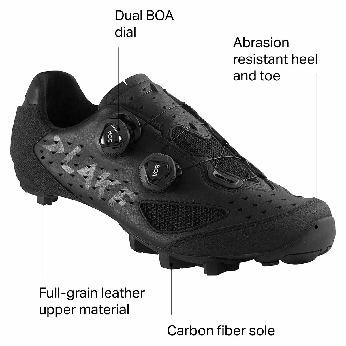 Combing Lake’s legendary fit with a tough, ruggedized exterior, the MX238 Cycling Shoes are a great option for adventure races and hardy mountain bike rides. The full-grain leather construction wraps your feet in supportive comfort, while Helcor toe, heel guards, and Aramid panels work together to provide protection, abrasion-resistance, and exceptional durability. Lake builds the shoes with their full-carbon Competition sole to keep the weight down while boosting your pedaling efficiency, and then gives you two Boa dials that make it quick and easy to get a perfect fit.