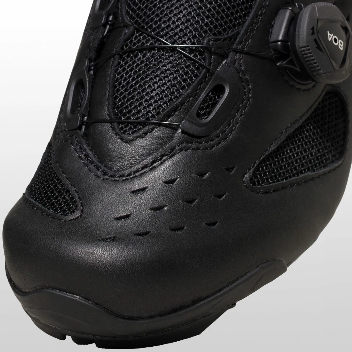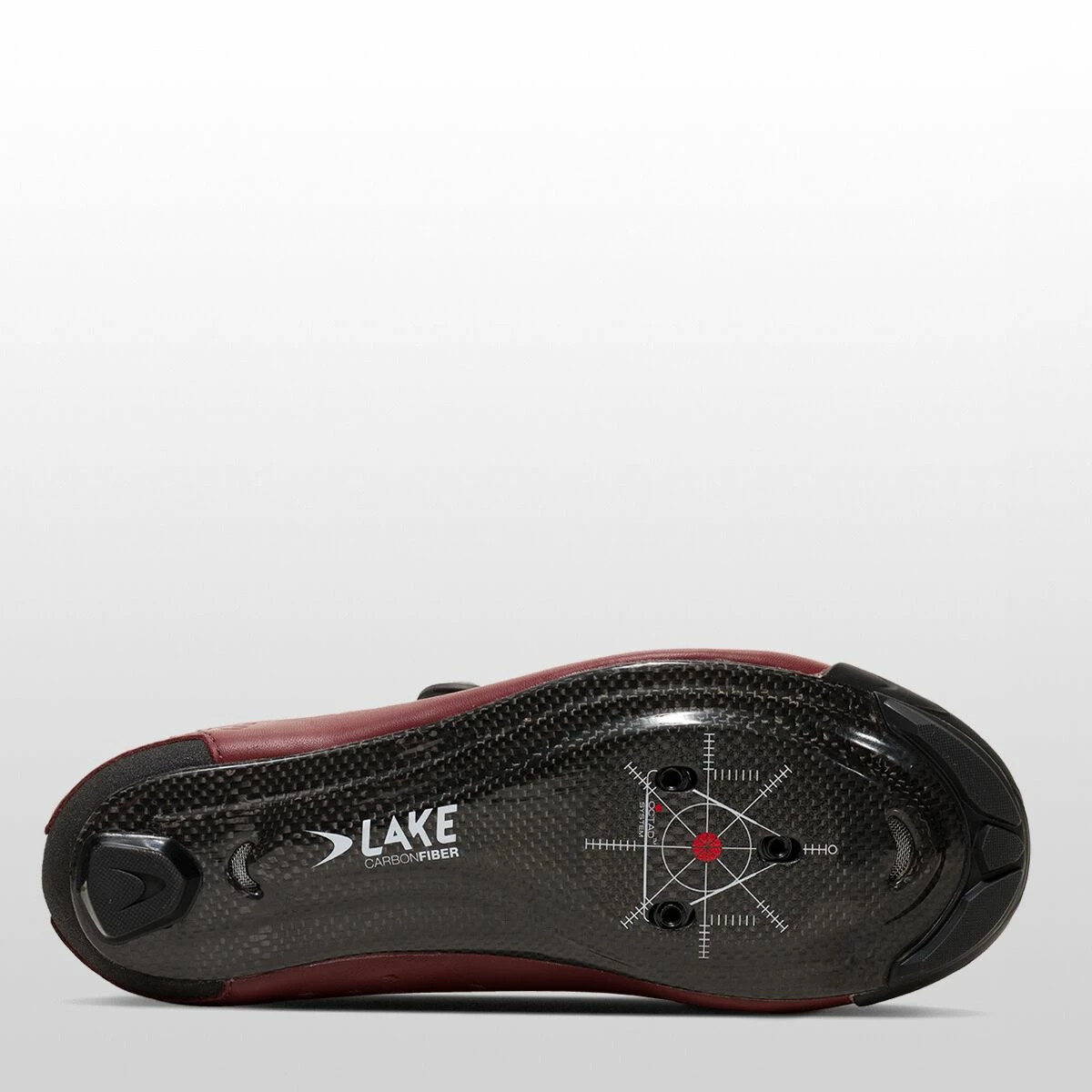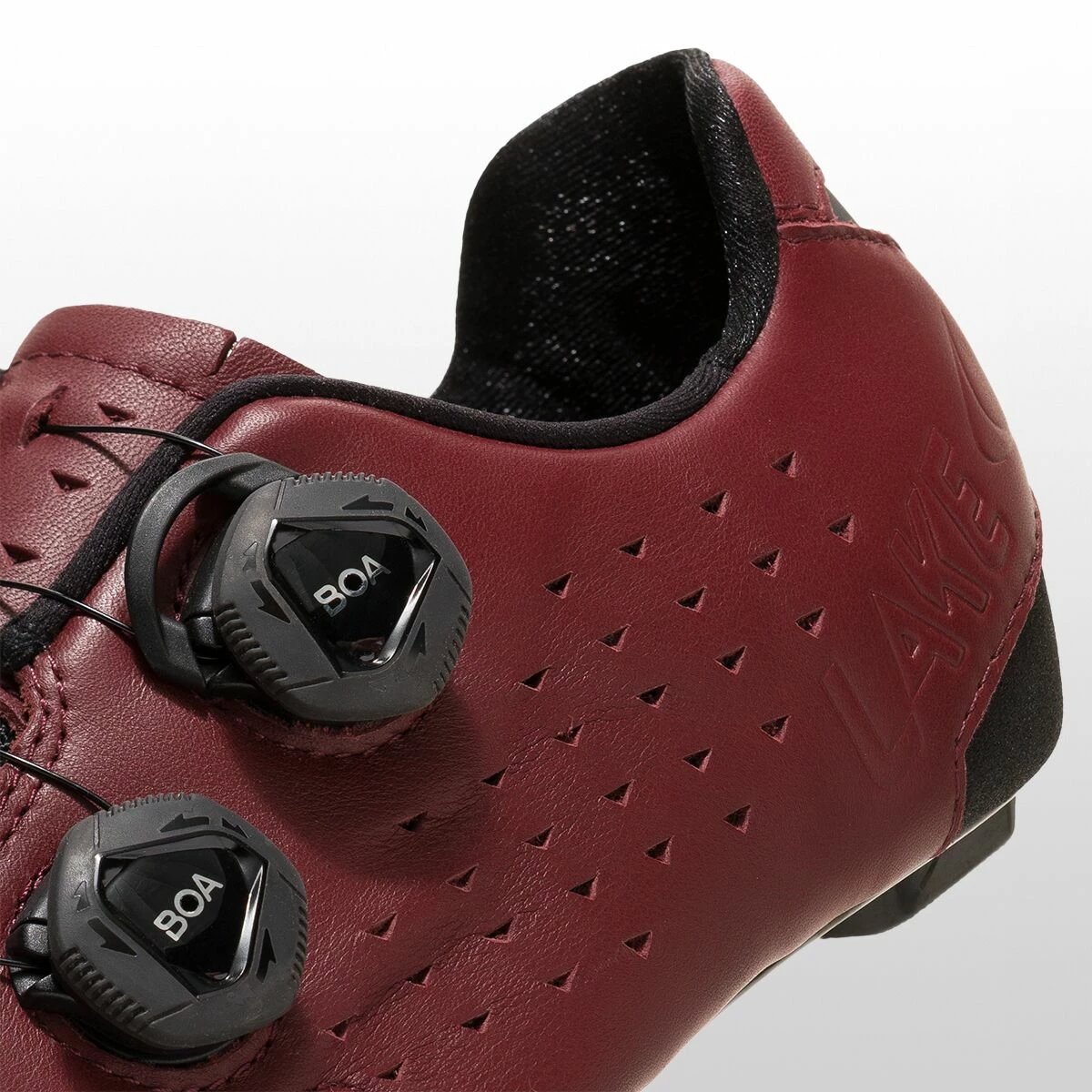 Lake evolves the CX237 to the new CX238 with updates to improve the longevity and performance of this long-time favorite road racing shoe in a wide model that is 15mm wider than the standard. The Competition last is shaped for better fit and comfort during hard efforts, with a slimmer heel and wider forefoot to allow for foot expansion under pressure. Supporting it all is Lakeโs Race carbon fiber sole, providing the stiffness we need for better power transfer and durability. A panel at the heel and a rubber bumper at the toe protect from prematurely wearing out the full-grain leather upper, which has mesh panels and venting to improve cooling.