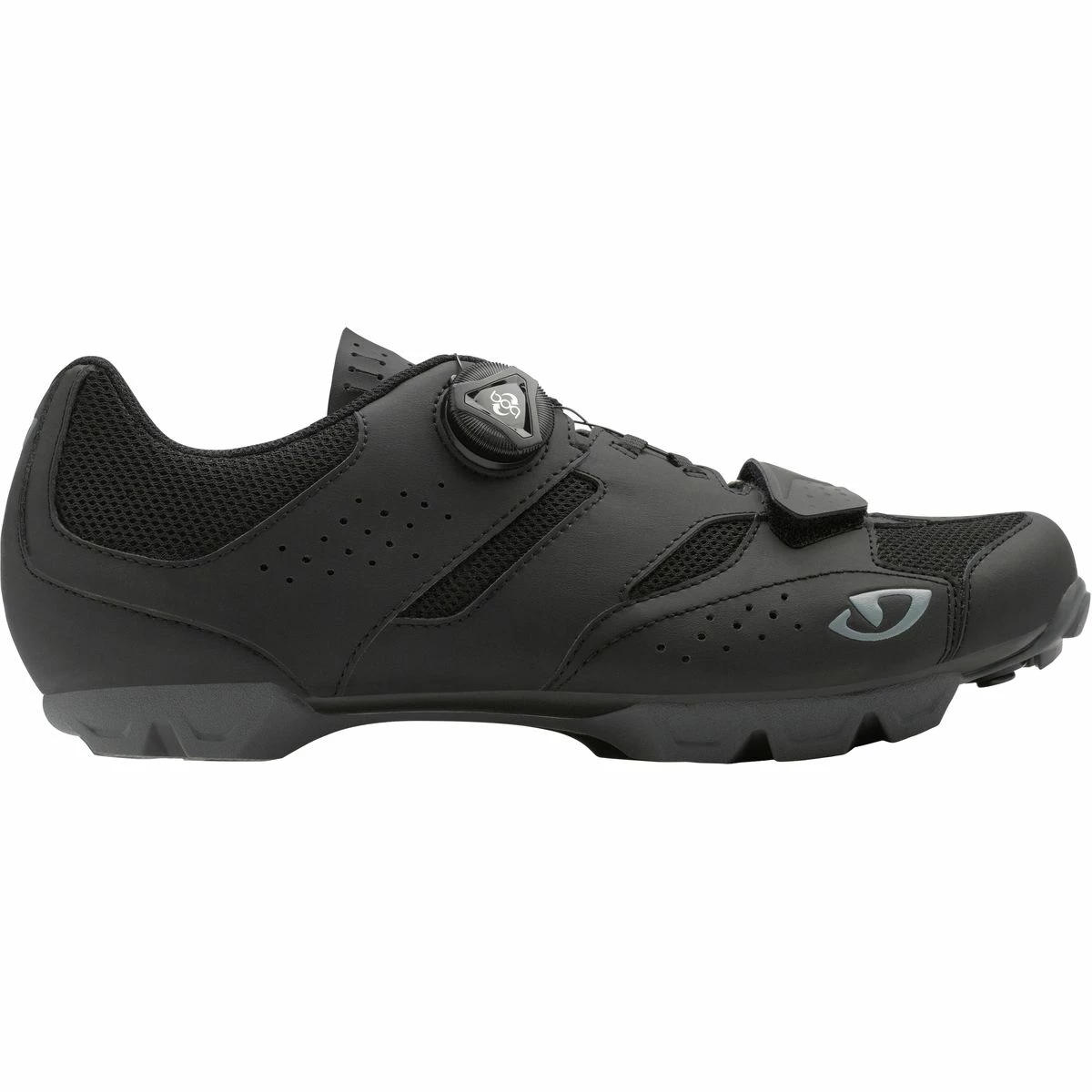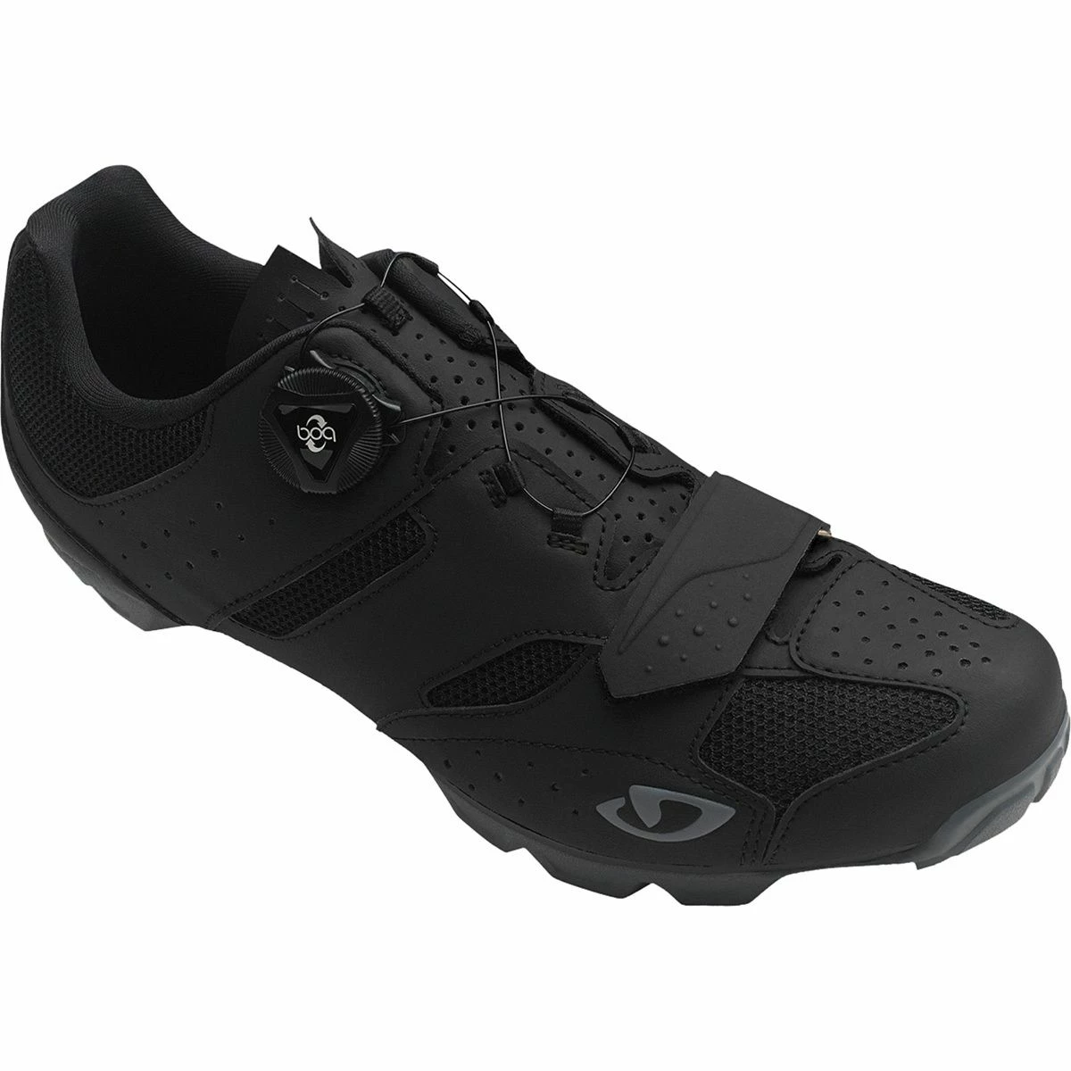 And with ferocity comes the usual wear and tear. So, Giro added microfiber reinforcements on the toe and heel to help withstand occasional brushes with trailside obstacles. And a co-molded nylon and rubber sole provides optimal durability as it does traction.