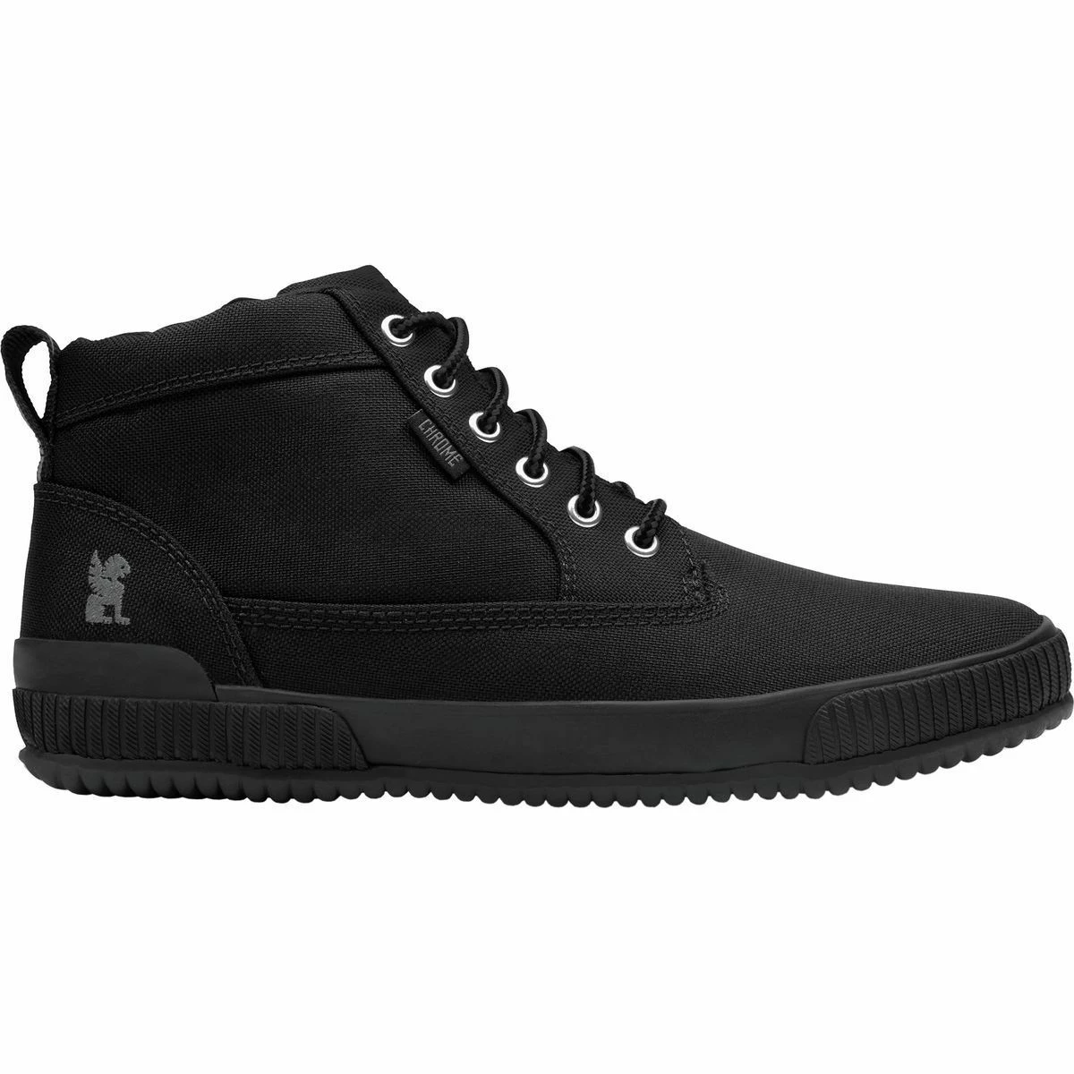 The Chrome 415 Work Boots offers you stylish footwear that is built to stand up to the day-to-day beatings of urban riding. Chrome uses the tough, 1000 denier Cordura for the bootโs uppers, which is roughly the same material that they use for their incredibly resilient messenger bags. The 415 Work Boot features a board lasted sole for added support and comfort. The sole also uses a vulcanized rubber that is ultra-durable and skid-resistant, giving you excellent traction in all weather conditions. For added strength, Chrome reinforced the midsole with a nylon/glass fiber shank and protects your heel with a rubber heel cup. Steel aglets are used to prevent your laces from fraying. Lastly, Chrome includes a padded collar at the ankle for additional comfort and reflective rear loops for increased visibility when the sun goes down.