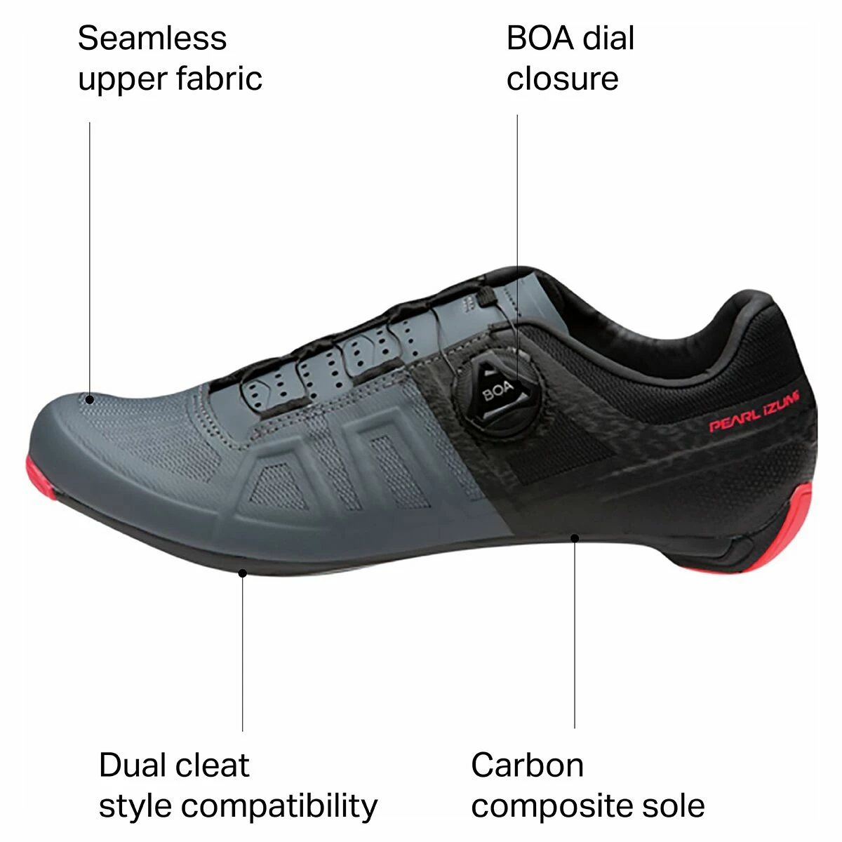 Balance price and performance with Pearl Izumi’s Attack Road Cycling Shoe. These lightweight and stiff kicks offer the support you need through your pedal stroke, and don’t waste your power on flex. On top, flexible uppers wrap your foot with support, and allow for breathing to prevent hot-foot.