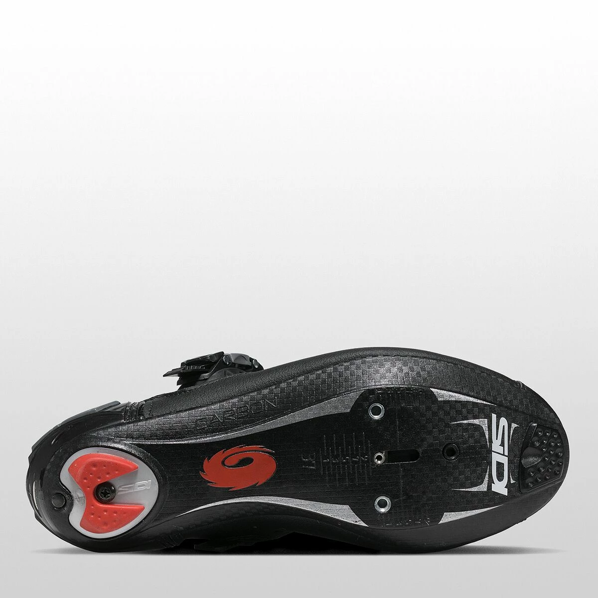 - Carbon-reinforced nylon soles transfer power to the pedals