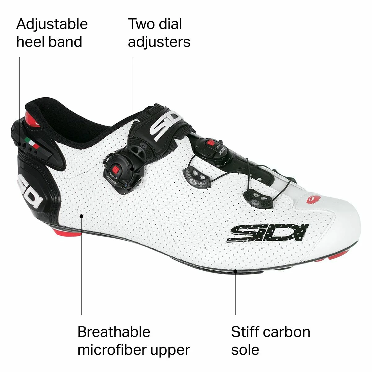 Sidi’s Wire 2 Air Vent Carbon Cycling Shoe is essentially the same as the Wire 2, but comes with a heavily perforated upper for extra ventilation when the temperature rises. It also sees the same updates as the Wire 2, improving fit and comfort over the previous generation while bridging the gap to their top-tier shoe the Shot. Like the Shot, the Wire 2 Air Carbon has the lower dial relocated to the top of the tongue for a more comfortable fit with equal tension across the whole foot. The instep strap has been made a bit narrower too, with more flexibility and the addition of padded edges to further improve comfort. One thing that hasn’t changed is Sidi’s unrivaled craftsmanship, ensuring these latest Wire 2 Air shoes continue the legacy of this esteemed Italian shoe brand thatโs graced the feet of multiple Grand Tour winners.