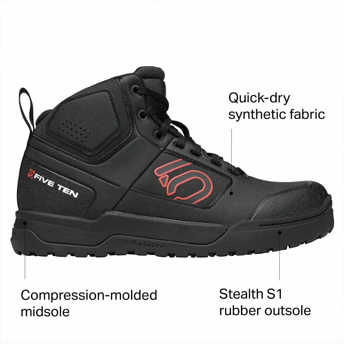 Weโve smashed our toes on a log or two to know how important impact protection is, and with the Impact Pro Mid Cycling shoe from FiveTen, weโre not going through as many ice bags as usual. We wear these shoes in pretty much any riding condition, from the local loops to big mountain days, it pays to have peace of mind with foot protection.