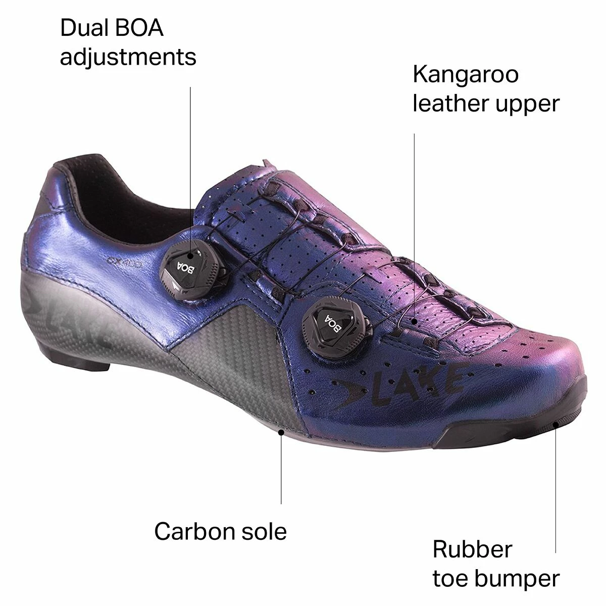 Lakeโs top-tier road shoe gets an update in the new CX403. Featuring the same custom fit carbon fiber sole and supple kangaroo leather upper as its predecessor, the CX403โs closure system is redesigned and the added rubber toe bumper helps extend the shoeโs longevity for all the training and racing ahead this season.